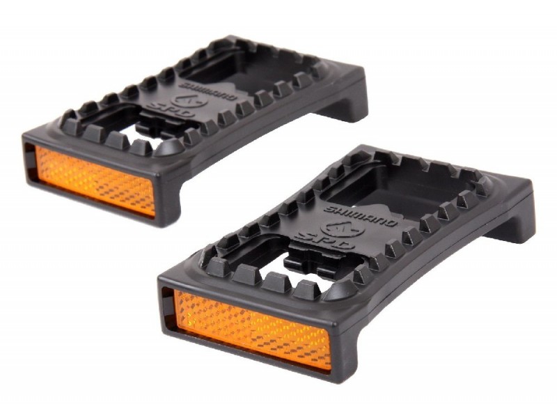 Y41R98070, plastový adaptér na oboustranné Shimano SPD pedály. Adaptér se nacvakne do mechanismu pro zarážku (kufr) a umožňuje snadnou jízdu i v botách bez zarážek (běžné tenisky atd.)
