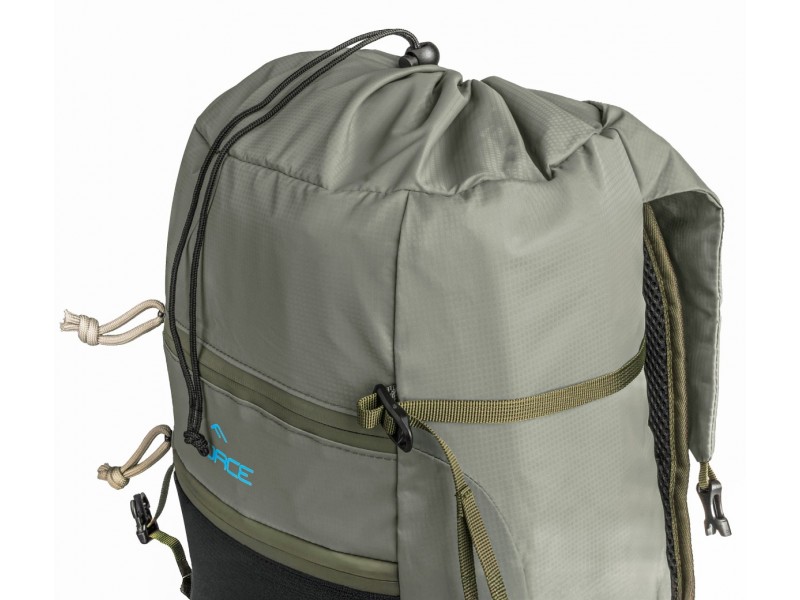 hlavní kapsa na zip, další dvě menší kapsy vepředu batohu