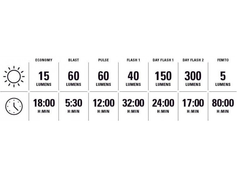 Je voděodolné podle norem IPX7. Světlo nabízí sedm režimů blikání nebo svícení, včetně vysoce viditelných režimů denního blesku, širokoúhlou optikou poskytující 270° viditelnost, nabíjení USB-C (kabel není součástí dodávky).