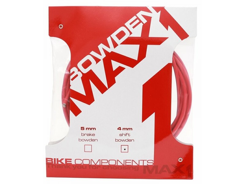 Řadící bowden MAX1 v několika barevných provedeních, polyethylenová vložka pro perfektní chod.Balení obsahuje 3m barevného bowdenu.Barva: červenáPrůměr: 4mm