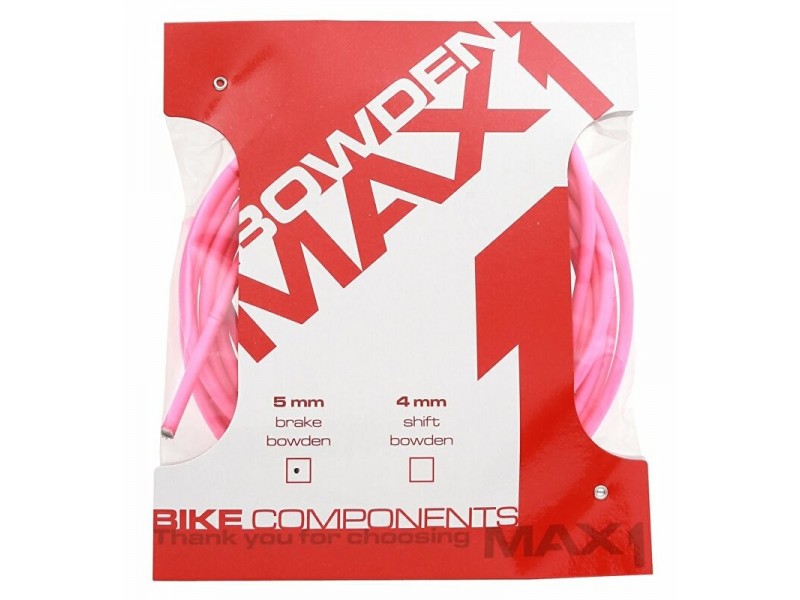 Brzdový bowden MAX1 v několika barevných provedeních, polyethylenová vložka pro perfektní chod.Balení obsahuje 3m barevného bowdenu.Barva: fluo růžováPrůměr: 5mm