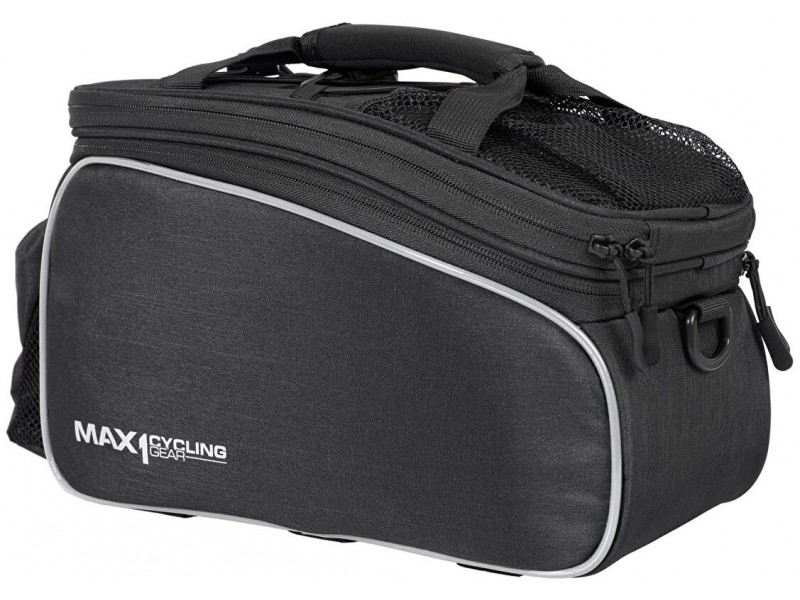 - víceúčelová brašna na nosič s nastavitelným objemem (rozepnutím horního zipu)