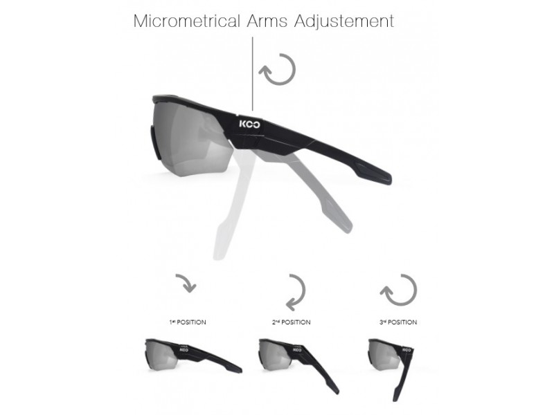 Pro snadné použití mají brýle OPEN jednoduše odnímatelné, vyměnitelné sklo. V balení se nachází ještě náhradní čiré sklo. Konstrukce brýlí také poskytuje i "Micrometrical arms adjustement" což znamená, že stranice lze naklonit do tří různých úhlů a tím brýle nastavit do potřebné polohy.