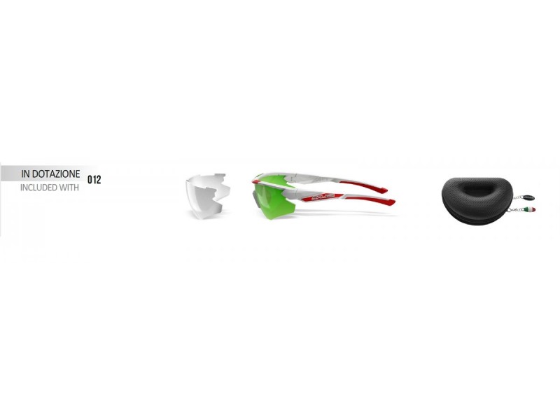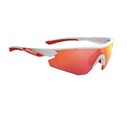 Bílý rámeček s červenými doplňky se samozabarvovacími skly (RWX), druhá skla v balení čirá. Kategorie zabarvení 1-3.