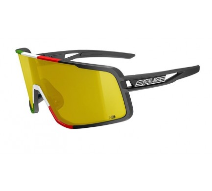 Nový model brýlí pro rok 2020, brýle mají černý rámeček s italskou trikolórou, sklo je zrcadlové se žlutým externím zabarvením.
