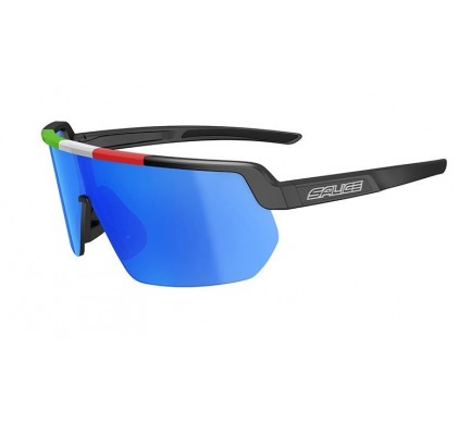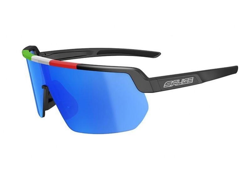 Nový model brýlí pro rok 2020, brýle mají černý rámeček s italskou trikolórou a s modrým zrcadlovým sklem.