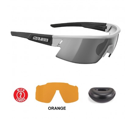 Brýle mají černo-bílý rámeček s černým zrcadlovým sklem,