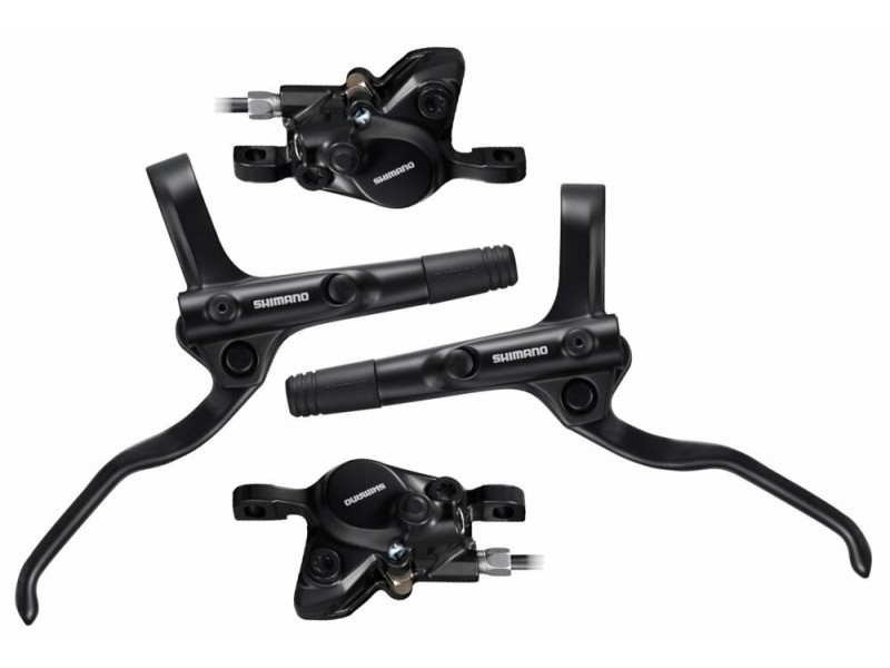 Brzda kotoučová SHIMANO MT200 černá př. a zad. komplet bez kotoučů / černé hadice)