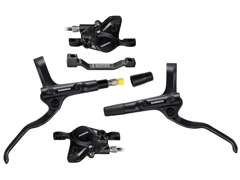 Brzda kotoučová SHIMANO MT200 černá, přední + zadní komplet bez kotoučů / černé hadice (zadní J-kit)