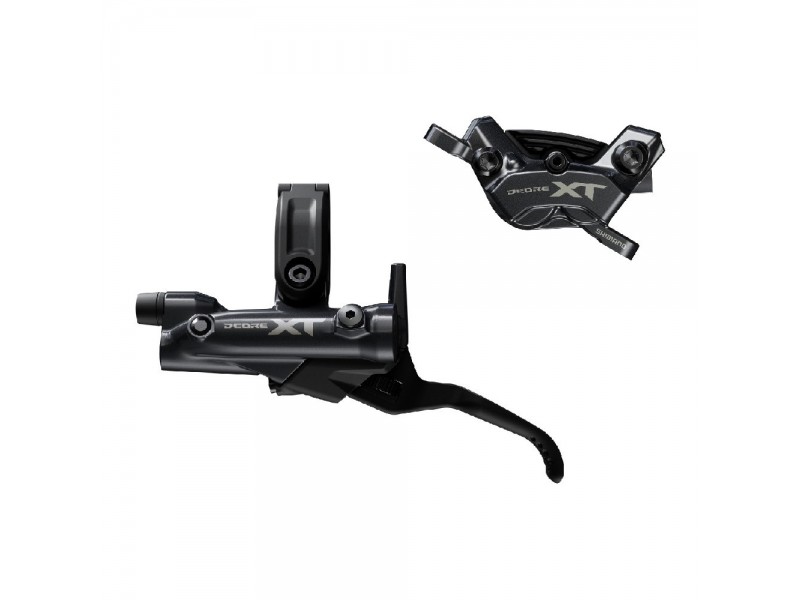 M82201JLFXSA100 Hydraulická kotoučová brzda Deore XT M8220. Skládá se z páky M8200 a třmenu M8220 (4-pístkový) a hadice SMBH90. Brzdy jsou naplněny minerálním olejem s nízkou viskozitou a odvzdušněné. Objímka páky kompatibilní pro montáž řazení s úchytem I-Spec EV. Brzdové destičky P03A. Přední One Way Bleeding, Délka hadice: 1000mm, Montáž: Na objímku, uchycení: Post Mount, Materiál: Hliník / Ocel