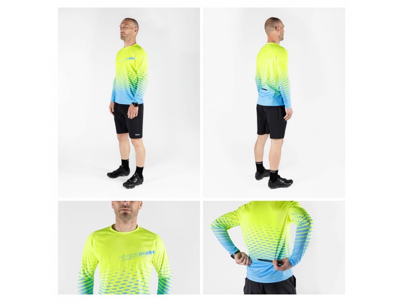 Dres FORCE MTB ANGLE dlouhý rukáv, fluo-modrý L