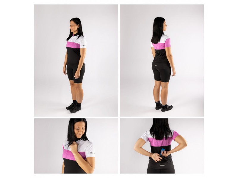 Dres FORCE VIEW dámský krátký rukáv, černo-bílo-růžový XL
