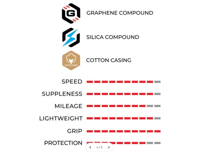 Závodní galuska nejvyšší kategorie, kterou používají i jezdci PRO-TOUR Visma-Lease Bike Žádná pneumatika nereaguje jako galuska a žádná galuska nepůsobí jako Corsa PRO. Vysoká přilnavost v zatáčkách za mokra i za sucha, nízký valivý odpor a neuvěřitelně pružná poddajnost, která vyhlazuje drsné silnice a intuitivně vás spojuje s asfaltem – galuska Corsa PRO je dokonalá závodní pneumatika. Je také extrémně lehká: každý pár je o 190 g lehčí než pláště Corsa PRO s těsnicím tmelem nebo latexovovými dušemi. Díky technologii materiálů osvědčené v pelotonu WorldTour – od nejtěžších monumentů až po ty nejdrsnější grand tour – a nesrovnatelné úspoře hmotnosti je Corsa PRO Tubular nejrychlejší pneumatikou na světě pro čistou rychlost. Revoluční přilnavost a odolnost sloučenin Graphene + Silica. Nadčasová dokonalost bavlněného střívka s hustotou vláken 320 TPI. Nenapodobitelné jízdní vlastnosti latexové duše. Corsa PRO galuska vytváří neuvěřitelně pružné spojení s vozovkou, maže valivý odpor, popírá silniční úlomky a vzbuzuje sebevědomí v projížděných zatáčkách. Díky bezproblémovému elektrickému vytvrzování dokonce zvyšuje aerodynamiku. Hmotnost: 340g (28-622)