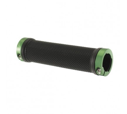 Gumové gripy s aretačními kroužky imbus šrouby délka 127mm vnější průměr 34mm průměr pro řidítka 22mm gripy jsou průchozí, součástí jsou zátky do řidítek barva černá/zelená