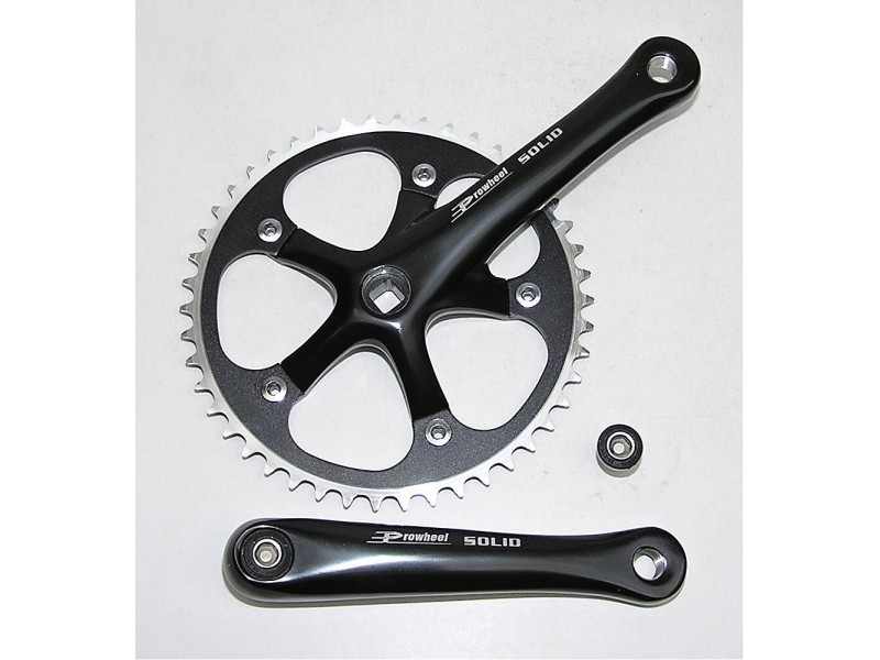 Kliky 1-převodník PROWHEEL,AL klika délka 165mm pro osu 4 hran,AL převodník 46 zubů,závit pro pedál 9/16",pro řetěz 3/32",černé