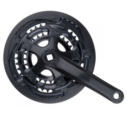 Trojpřevodník s krytem pro 6/7 kolo, nýtovanéocelové převodníky 48/38/28,plastový kryt,délka klik 170 mm, doporučená délka osy 122 mm