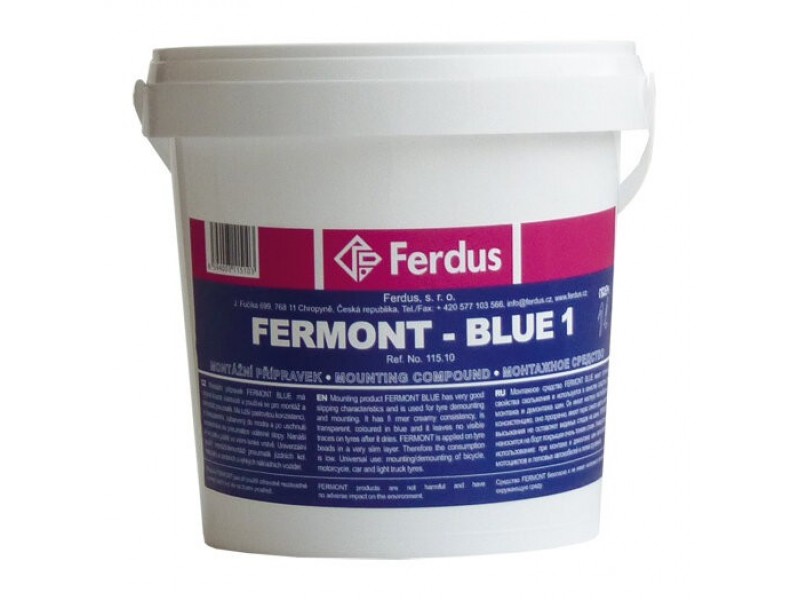 Montážní přípravek FERMONT BLUE má výborné kluzné vlastnosti a používá se jako prostředek pro montáž a demontáž pneumatik. Má tužší pastovitou konzistenci a proto se do něj aplikační štětec neponořuje. Je transparentní, zabarvený do modra a po uschnutí nezanechává na pneumatice viditelné stopy. FERMONT BLUE se nanáší na patku pláště ve velmi tenké vrstvě a proto je jeho spotřeba při práci nízká. FERMONT BLUE je univerzální, používá se při montáži a demontáži pneumatik jízdních kol, motocyklů a osobních a lehkých nákladních vozidel.
