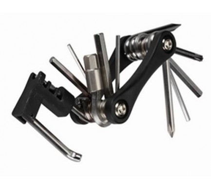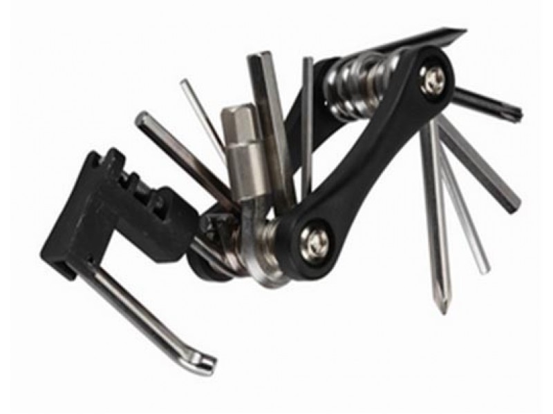 Kompaktní nářadíčko POLY 12 obsahuje vše, co potřebujete na opravu kola na cestě. Obsahuje imbus 2, 2,5, 3, 4, 5, 6, 8, plochý a křížový šroubovák, torx T25, centrovací klíč a nýtovač řetězu.