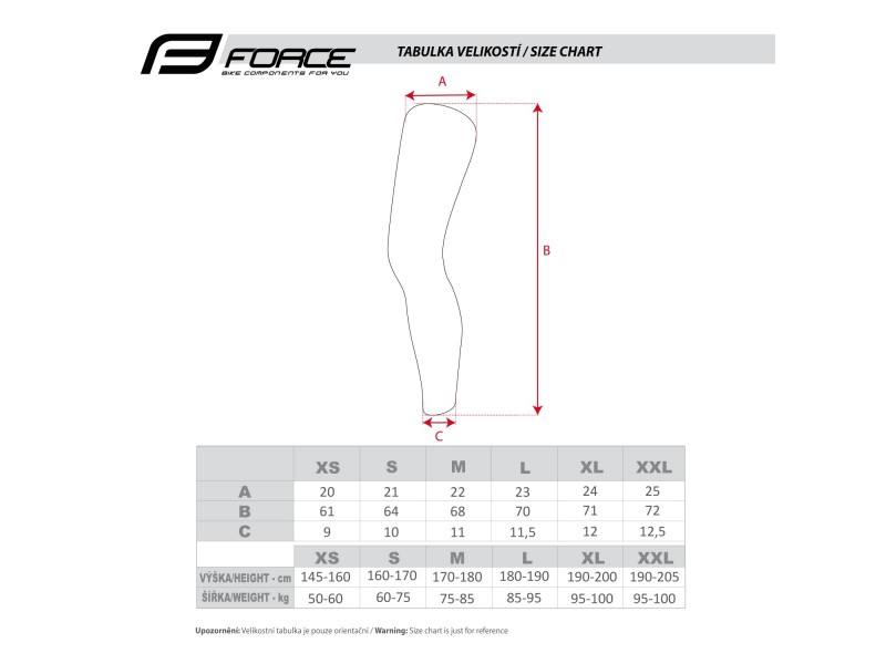 velikost XS doporučena pro výšku postavy 145 - 160 cm
