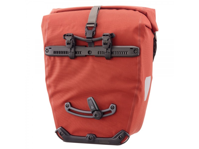 Vodotěsná vnější kapsa s rolovacím uzávěrem udržuje menší věci v suchu a bezpečí, ale zároveň je snadno přístupná. Díky boční odrazce budete viditelní i za zhoršených světelných podmínek. A díky upevňovacímu systému Quick-Lock lze odolnou zadní brašnu bez námahy připevnit na nosič.