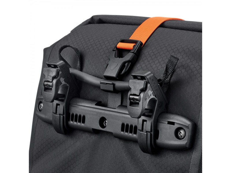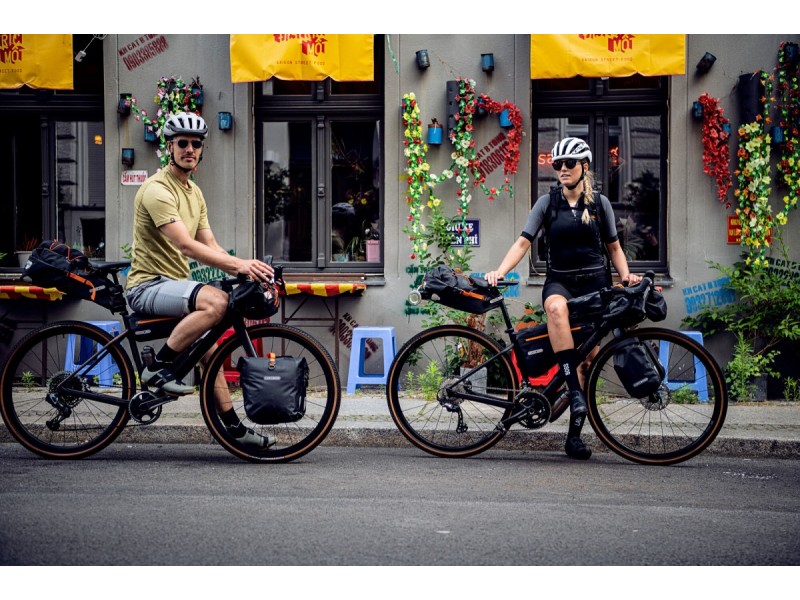 NEJLEHČÍ BOČNÍ BRAŠNY OD ORTLIEBu Gravel-Packy jsou ideálními dodatečnými brašnami, pokud jsou vaše bikepackingové výlety až příliš dlouhé a potřebujete si sbalit o něco vícevěcí, než je pro bikepacking obvyklé. Pro vícedenní bikepacking se předpokládá jejich umístění na předním nosiči tak, aby byly co nejníže na kole a jen minimálně ovlivňovaly manévrování v terénu, ale použít se dají i jako zadní brašny pro jakoukoliv cykloturistiku. Zvláště v případě, že hledáte velmi lehké brašny. Gravel-Packy jsou vlastně odlehčenou verzí klasických Sport-Rollerů, ovšem ORTLIEB u nich využil lehčího materiálu s Rip-Stop úpravou, odstranil pro bikepacking přebytečné detaily jako jsou například vnitřní kapsy a navíc přidal druhý spodní hák pro naprosto pevné uchycení ke kolu. Odolnost, kvalita a vodotěsnost však zůstávají stále v kategorii, na kterou jste u ORTLIEBu zvyklí, což potvrzuje i 5-ti letá záruka. Samozřejmostí jsou velké reflexní plochy na bocích.