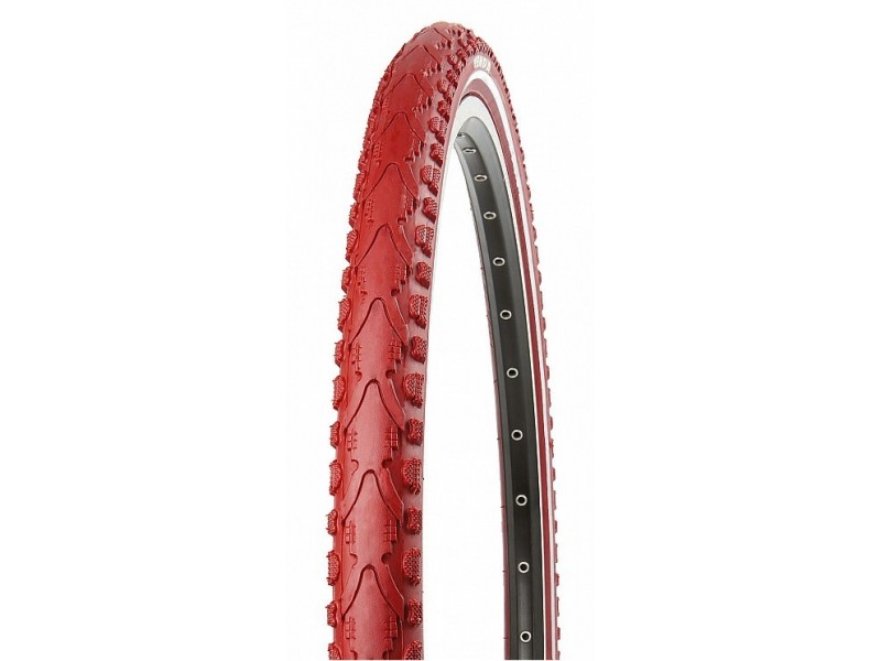 Drátová patka, crossový plášť o rozměru 40-622 (700x38C), červená barva, reflexní pruh po obvodu, 24TPI, vzor K-935 "Khan