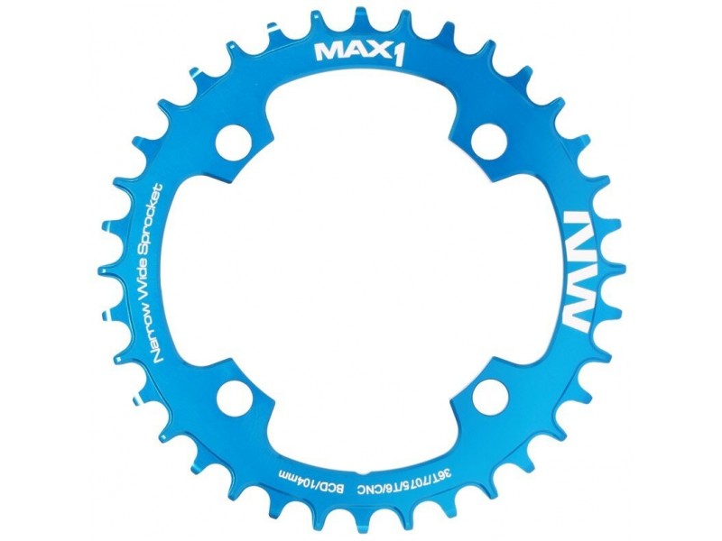 Převodník MAX1 Narrow Wide pro montáž na kliky s roztečí 104mm.Tvar zubů zajišťuje hladký chod a stabilitu řetězu s převody 1x10 nebo 1x11, převodník je tedy možné použít jak na 10-ti, ale i 11-ti rychlostní řazení.Specifikace:- CNC způsob zpracování- Elox povrchová úpravaVíce na: MAX1.CZDovozcem značky MAX1 do ČR je společnost Cyklomax, spol. s r.o.