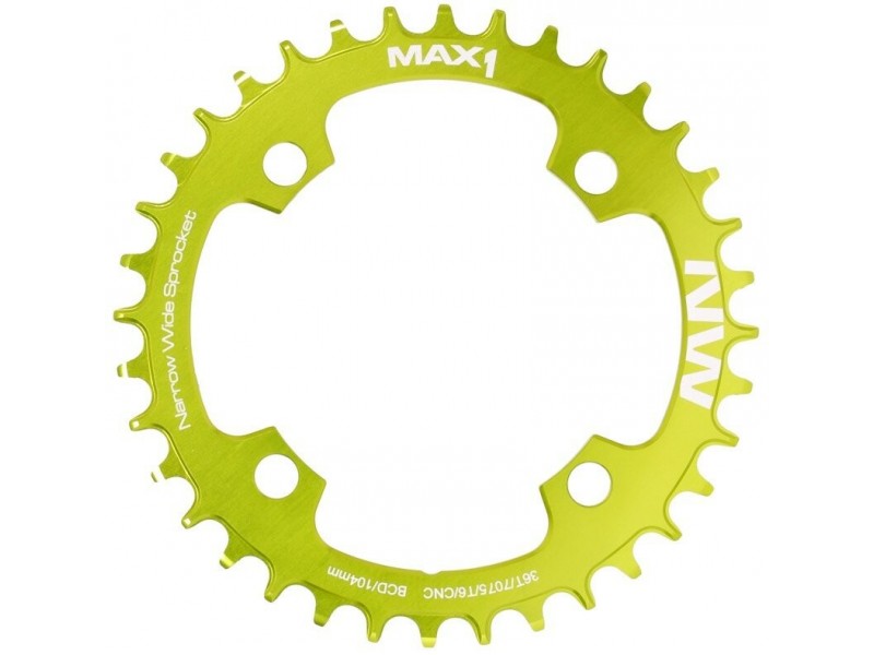 Převodník MAX1 Narrow Wide pro montáž na kliky s roztečí 104mm.Tvar zubů zajišťuje hladký chod a stabilitu řetězu s převody 1x10 nebo 1x11, převodník je tedy možné použít jak na 10-ti, ale i 11-ti rychlostní řazení.Specifikace:- CNC způsob zpracování- Elox povrchová úpravaVíce na: MAX1.CZDovozcem značky MAX1 do ČR je společnost Cyklomax, spol. s r.o.