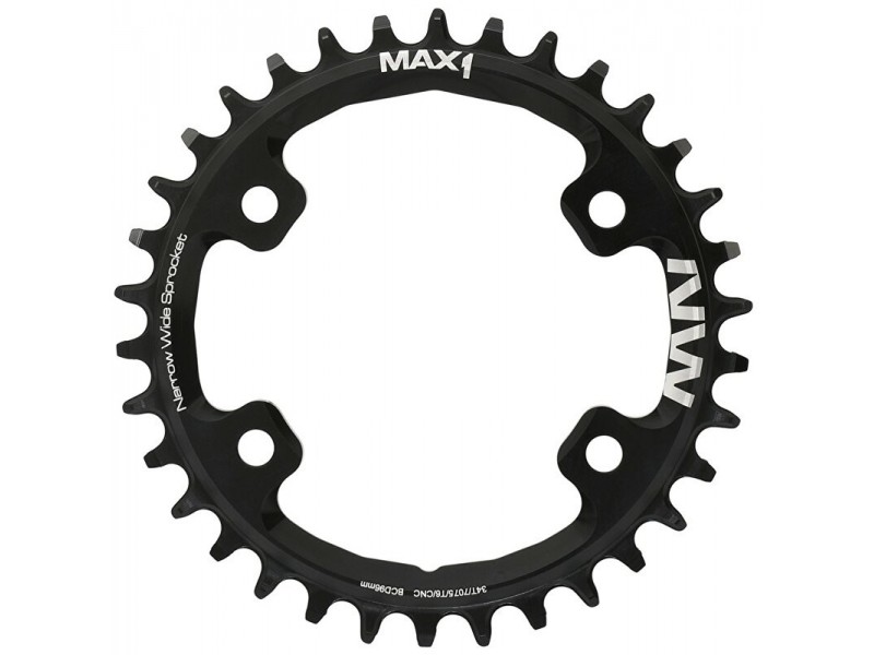 Převodník MAX1 Narrow Wide pro montáž na kliky s roztečí 96 mm.Tvar zubů zajišťuje hladký chod a stabilitu řetězu s převody 1x10 nebo 1x11, převodník je tedy možné použít jak na 10-ti, ale i 11-ti rychlostní řazení.Specifikace:- CNC způsob zpracování- Elox povrchová úpravaVíce na: MAX1.CZDovozcem značky MAX1 do ČR je společnost Cyklomax, spol. s r.o.