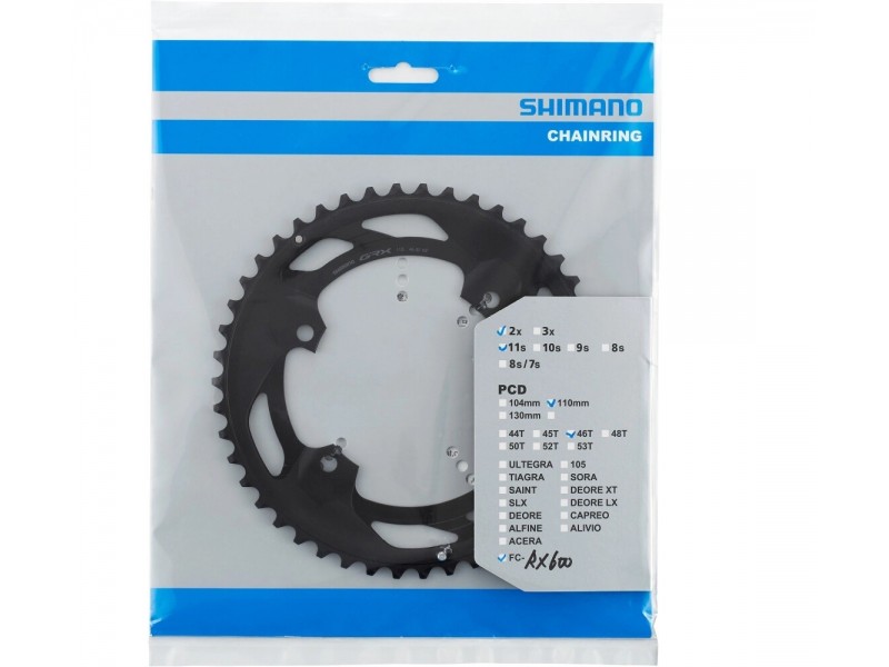 Y0K698010, AL převodník Shimano GRX600 počet zubů: 46, rozteč: 110mm, pro 2x11 speed pro kombinaci 46-30z čtyřpacka černý