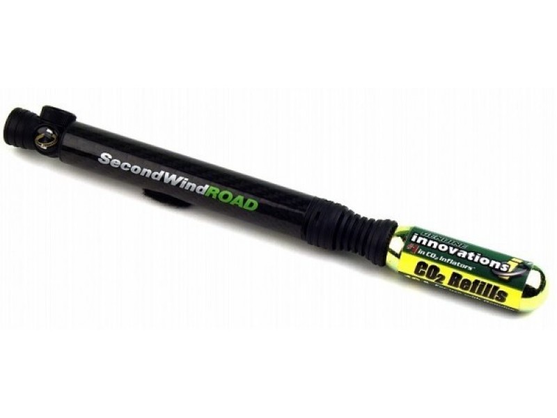 Hustilka, která je i na bombičky CO2, možnost použít i jen jako hustilku, černá carbonová, bombička CO2 závitová v balení.