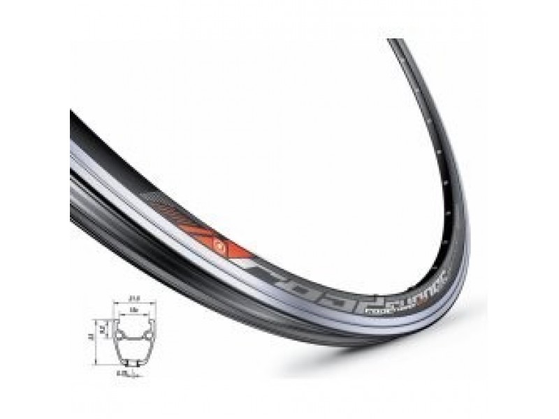 Silniční plášťový AL ráfek, 622, černý, 32 děr, 1 nýt, broušená brzdná plocha pro lepší účinost brzd