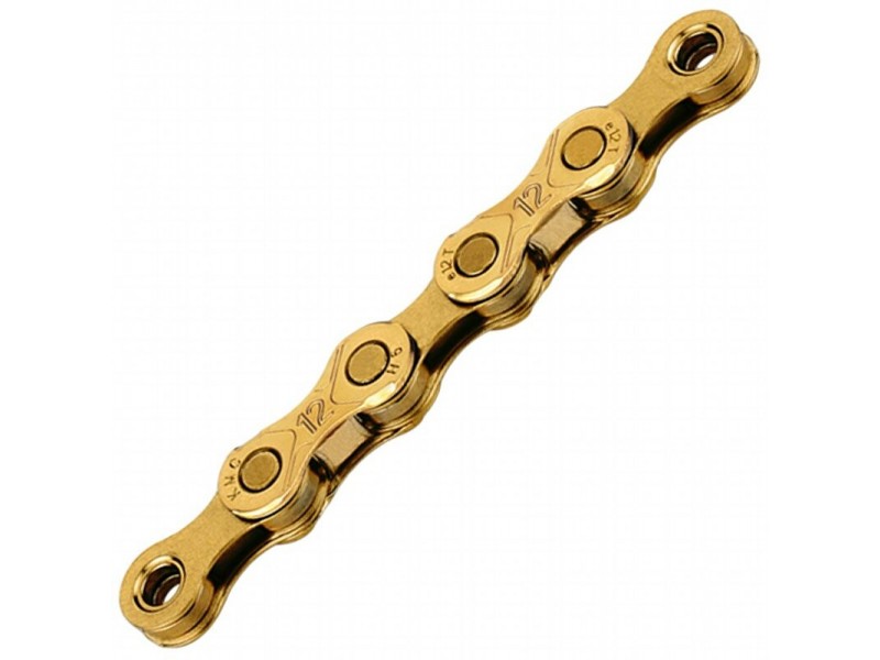 Řetěz KMC X-12-Black Tech-Gold, vhodný na řazení Shimano/Sram/Campa, nesměrový, 130 článků, 278 gramů, včetně spojky