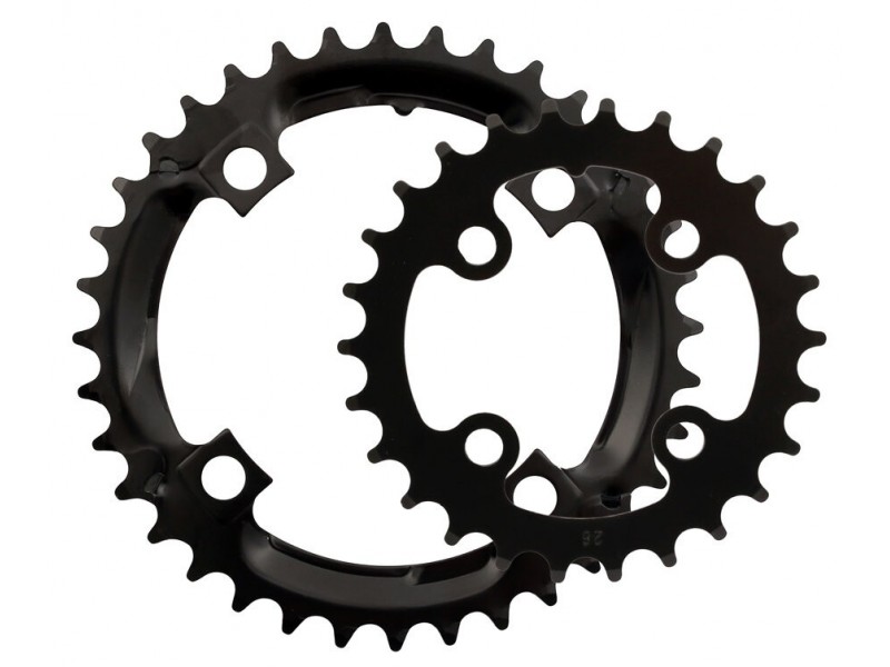 Sada náhradních ocelových převodníků pro dvoupřevodník MTB. Větší převodník s náběhy pro lepší nabíhání řetězu při řazení.- větší převodník rozteč 104 mm / 36 zubů- menší převodník rozteč 64 mm / 26 zubů