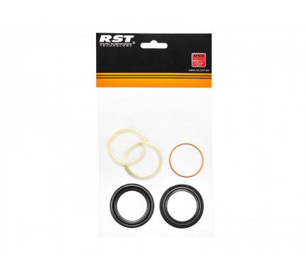 Sada hlavních těsnění (2 ks) a těsnících kroužků (3 ks) pro vidlice RST s průměrem vnitřních nohou 36 mm, průměr osazení pro montáž cca 46 mm. Vhodné pro modely Killah 27,5 / 26, Stitch 27,5 / 26, Storm a Space. Tento produkt vyžaduje odbornou montáž.