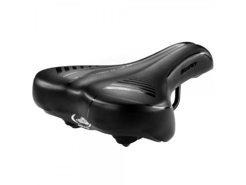 Dámské široké sedlo s PU vystýlkou, ocelové černé pružiny, černé, syntetická kůže.