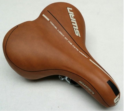 Dámské široké sedlo s PU vystýlkou, ocelové černé pružiny, hnědé, syntetická kůže.