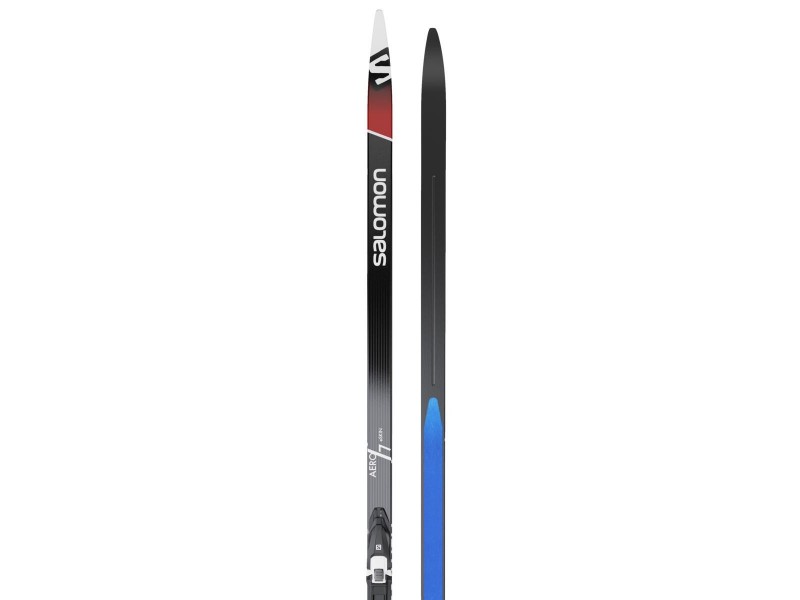 41375000190 set běžek Salomon Aero 7 eSKIN a namontovaného vázání Salomon Prolink Shift Pro Classic lyže styl classic skluznice G3 base jádro Densolite 2000 grip technologie eSkinGrip+, v odrazové části samolepící umělá tulení kůže napuštěné základovým voskem a opatřené krycí folií broušené šířka 48/46/44/46mm délka 190cm vázání Salomon Prolink Shift Pro Classic jedna hrazda dvě drážky (NNN,Turnamic) posuvné na desce PSP, 5 poloh flexe 85 manuální ovládání