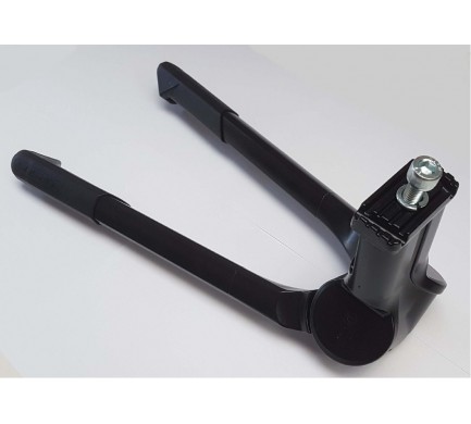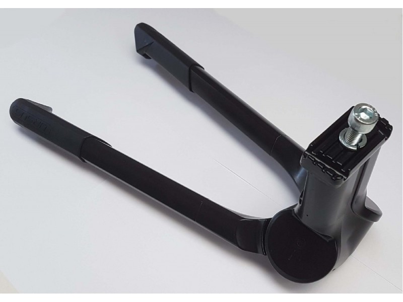 Velmi masivní AL dvojitý stojánek pro kola, montáž za středovou osu,černý, ideální pro elektrokola( nebo kolo s dětskou sedačkou a dítětem), nosnost 80 kg, obě nohy se vyklápí současně, délka nohou 300 mm, rozsah mezi nohama 40 cm v rozloženém stavu,v rzloženém stavu od země k platformě 310 mm