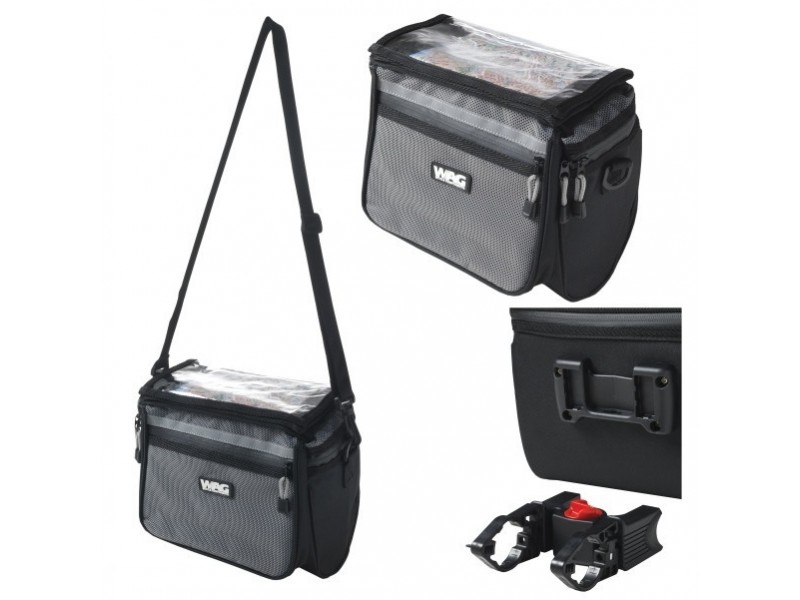 Vystužená přední brašna na řidítka s prostorem na mapu,upínání na řidítka pomocí rychloupínacího klipu, barva: šedo-černá, vnitřní objem: rozměry: výška cm, šířka cm, hloubka cm