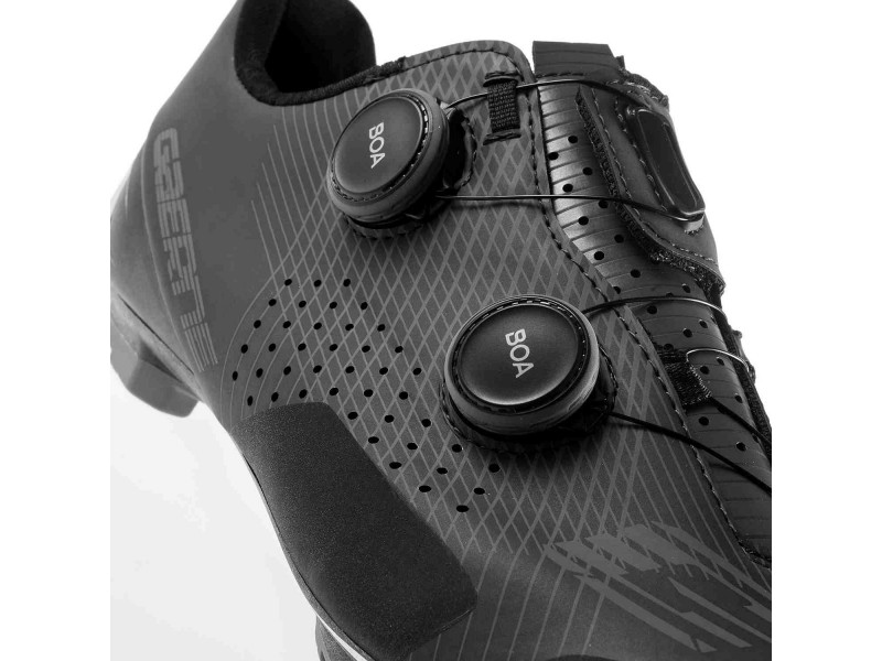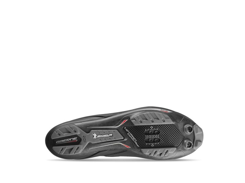 3860-011 Svršek je vyroben z perforovaného mikrovlákna. Spolu s anatomickým jazykem bota poskytuje vynikající prodyšnost a dokonalé klima pro jezdce. DUAL FITTING CLOSURE SYSTEM - dvě nezávislá BOA Dial Z kolečka umožňují získat přesné, rychlé a personalizované zapínání bez jakéhokoli tlakového bodu. BOA L6 DIAL Z kolečka - představují rychlost, přesnost, výkon, pohyb. Prémiový aerodynamický design kolečka pro integraci s cyklistickou obuví pro nekompromisní výkon a pro zajištění přesného upnutí a v kombinaci s pogumovanou povrchovou úpravou umožňují efektivnější úchop. Technologie Boa garantuje kolečka a lanka zavíracího systému BOA po celou dobu životnosti výrobku. Tato bota je navržena s technologií TSS "Tarsal Support System", která zajišťuje dokonalou polohu chodidla uvnitř boty, čímž se získá zaoblený a efektivnější tah do pedálů. Zcela nová integrovaná protiskluzová pata se nedeformuje ani neoslabuje. Díky svému protismykovému tvaru umožňuje nejlepší stabilitu a kontrolu chodidla. Vnitřní protiskluzová úprava umožňuje nejlepší stabilitu chodidla a kontrolu. EPS TRANSPIRANT INSOLE: Vnitřní anatomická stélka s podporou oblasti nártu, která poskytuje pohodlí a efektivitu šlapání. Stélka je perforovaná pro optimální mikroklima uvnitř boty. EPS LIGHT WEIGHT CARBON FIBER MTB SOLE 10.0: Technologie Gaerne v kombinaci s know-how designérů a techniků společnosti Michelin dala vzniknout nové podrážce EPS Light Weight Carbon Fiber Mtb, která nabízí tu správnou kombinaci výkonu, trvanlivosti, pevnosti a lehkosti. Její struktura je tvořena karbonem, který poskytuje vynikající tuhost a sílu při šlapání. Gumový dezén Michelin kombinuje směs navrženou pro vyvážení výkonu a odolnosti proti oděru - také v extrémních podmínkách - s designovým profilem, který umožňuje vynikající přilnavost a trakci. Velká vzdálenost mezi segmenty umožňuje lepší samočištění a okamžité zbavení bahna. Pro jezdce, kteří potřebují ještě větší přilnavost, umožňují dva otvory v přední části upevnění šroubovacích a výměnných špuntů. Tato podrážka testovaná nejlepšími cyklisty, představuje vrchol z hlediska technologie, inovace a funkční kvality.