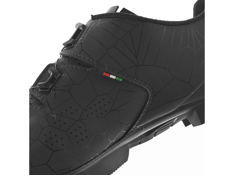 3883-001 G.EDGE jsou MTB boty pro ty, kteří chtějí maximálně využít každý kilometr na štěrku, svazích a všem mezi tím. Tyto boty, které jsou navrženy tak, aby dokonale spojovaly výkon a pohodlí, jsou ideální pro cyklisty hledající funkční produkt. Mikrovláknový materiál je strategicky perforován po celé horní části, aby optimalizoval prodyšnost a zlepšil větrání, takže vaše nohy zůstanou během jízdy v suchu a chladu. Systém zapínání, vybavený mikro-nastavitelným kolečkem BOA L6 DIAL C a 5 vodítky tkaniček, zajišťuje rovnoměrné a bezpečné zapínání bez jakýchkoli tlakových bodů. COMFORT FIT TONGUE obsahuje high-tech polstrovací vrstvu pro větší pohodlí a prodyšnost. Integrovaná protiskluzová pata zvyšuje stabilitu a kontrolu nohy pro lepší zážitek z jízdy. Vložka EPS TRANSPIRANT INSOLE s anatomickou podporou pro pohodlí a efektivitu šlapání. MTB 2DENSITY SOLE je speciálně navržená podrážka pro milovníky horských kol. Je vyrobena ze směsi nylonu a sklelných vláken, díky čemuž dosahuje pozoruhodné rovnováhy mezi odolností a lehkostí. Dezén je pečlivě navržen tak, aby poskytoval optimální přilnavost a stabilitu a vyznačoval se vynikající odolností v různých terénech. Pro zvýšení přizpůsobivosti jsou v přední části umístěny dva odnímatelné hroty, které zlepšují trakci, zejména v náročném a blátivém terénu.