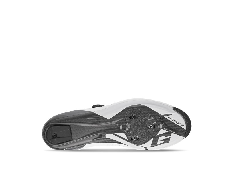 Model G. JET 3680-007 je nejnovější inovací v naší řadě vysoce výkonné cyklistické obuvi, který byl vyvinut na základě rozsáhlého výzkumu v našem oddělení výzkumu a vývoje a testován s profesionálními cyklisty, kombinuje technologii, styl a výkon. Svršek boty je z materiálu G.Frametex, což je inovativní materiál vyvinutý společností Gaerne, který zajišťuje větší stabilitu nohy a zvyšuje lehkost boty. Strategicky rozmístěné laserové perforace zajišťují vynikající ventilaci, díky níž zůstanou vaše nohy v chladu a suchu po celou dobu jízdy. INFIT CLOSURE SYSTEM 1.0 je vybaven diferencovaným zónovým nastavením s asymetrickým designem ovládaným dvěma otočnýma kolečkama BOA® Li2, které zajišťují lepší stabilitu při šlapání, přesné působení síly na pedál a tím pádem optimalizovaný přenos energie a minimalizaci tlakových bodů. Utahovací kolečka BOA® Li2 DIAL F se mohou pochlubit elegantním a nízkoprofilovým designem. Pogumovaný povrch zajišťuje vynikající přilnavost a kontrolu. Kolečko Li2 se utahuje otáčením směrem ven a povoluje otáčením v opačném směru, což umožňuje přesné a snadné nastavení. Jazyk boty s technologií FIT TONGUE 1.0 je konstruován s proměnlivou tloušťkou a obsahuje high-tech tlumicí vrstvu pro větší pohodlí a prodyšnost. ANATOMICAL HEEL CUP 1.0 - technologie patní části, která zlepšuje stabilitu a kontrolu nohy a díky vnitřní protiskluzové úpravě omezuje nežádoucí pohyb, aniž by jste museli tretru extrémně utahovat. Výsledkem je vynikající opora a lepší přenos energie. Anatomická stélka je navržená pro maximální stabilitu a pohodlí, poskytuje zesílenou podporu v oblasti paty a nártu. Strategicky umístěné perforace jsou v souladu s větracími otvory podrážky, zlepšují proudění vzduchu a vytvářejí ideální mikroklima uvnitř boty. Materiál, ze kterého je vyrobena je samozřejmě rychleschnoucí a zabraňuje hromadění vlhkosti, takže vaše nohy zůstanou svěží a suché i během intenzivní jízdy. GAERNE EPS LIGHTWEIGHT FULL CARBON SOLE 12.0 Ultralehká a ultratenká, podešev z uhlíkových vláken zajišťuje, že každý watt síly je přenesen na pedály. Čtyři větrací otvory zaručují větrání uvnitř boty. Podrážka má protiskluzovou vložku ve špičce a vyměnitelnou podpatěnku v zadní části. Možnosti polohy zarážky byly ve srovnání s předchozí podrážkou zvýšeny o 9 mm a měřítko vytištěné na podrážce vám umožní zapamatovat si polohu zarážky. Vynikající index tuhosti 12. Hmotnost: 244g (vel. 42)