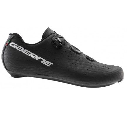 NEW 2022!!! 3654-001 nový základní model silničních treter Gaerne. Svršek boty je vyroben z měkkého a perforovaného mirkovlákna, díky kterému je bota lehká a prodyšná. Systém uzavírání: jedno kolečko BOA L6, které stahuje celou botu bez jakéhokoliv tlakového bodu a zajištuje snadné a přesné utahování i rychlé povolení upnutí boty na noze. Comfort Fit Tongue - jazyk boty je perforovaný pro lepší vnitřní proudění vzduchu a je vybaven hi-tech tlumící vrstvou pro větší pohodlí. Integral anti slip heel cup - zcela nová protiskluzová pata, která se nedeformuje. vložka Transpirant Insole - je anatomická vložka se speciální konstrukcí, která se přizpůsobí chodidlu pro optimální pohodlí. Vložka má mikroperforace pro lepší odvětrání podrážka EPS Carbon Power Sole 8.0 - je vyrobena z nylonu obohaceným karbonem, který poskytuje optimální tuhost. Podrážka je velmi tenká pro co nejlepší přenos energie do šlapání. Pět otvorů zaručuje optimální větrání nohy uvnitř boty. Index tuhosti: 8,0