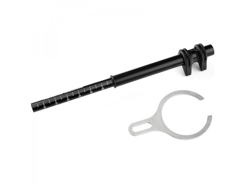 Ukazatel zdvihu a sagu lze použít na kole při testování a nastavování kola, namontujte jej, proveďte několik jízd a zjistěte, jak moc byste měli doladit Váš pružinový tlumič.
