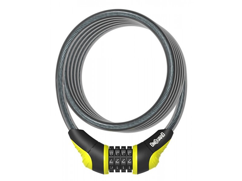 Zámek ONGUARD spirála 1800x10mm žlutý, stavitelný kód, držák