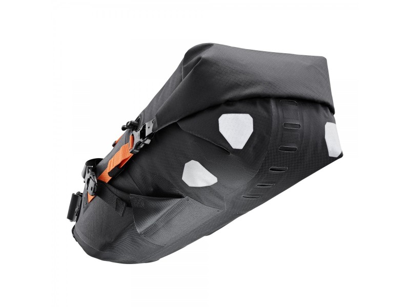 Pripravte sa na svoje ďalšie veľké dobrodružstvo. Základným prvkom bikepackingovej výbavy je poriadna podsedlová brašna a tá naša je vďaka masívnym odolným suchým zipsom a dômyselnej tvarovej konštrukcii veľmi pevne pripojená k sedlovke a k sedlu samotnému. Priestranná veľkoobjemová vodotesná brašna pod sedlo. Ideálna pre uloženie náhradného oblečenia a ďalšieho ľahkého vybavenia. Objem brašne sa mení podľa toho, na ako dlho idete a koľko toho veziete medzi cca 7 a 11 litrami. Seat-Pack zostáva stále v správnom tvare a polohe, bez ohľadu na to, aký terén máte zrovna pod nohami. Brašna plní funkciu blatníka a zadržuje vodu a bahno. Jej obrovskou výhodou je okrem vodotesnosti tiež fakt, že má vzduchový ventil, takže jej balenie a hlavne zatváranie je ľahké a rýchle.