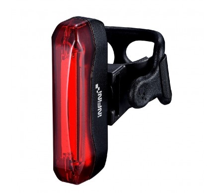 Zadná blikačka viditeľná z každej strany, 15 chip COB LED, svietivosť až 30 lm, 6 funkcií svietenia a blikania, vodovzdorná, indikátor slabej batérie. V balení sa nachádzajú 2 držiaky blikačky (na okrúhlu sedlovku pre priemer 19 - 48 mm a klip pre uchytenie napr. na batoh) a kábel USB-micro USB pre nabíjanie.