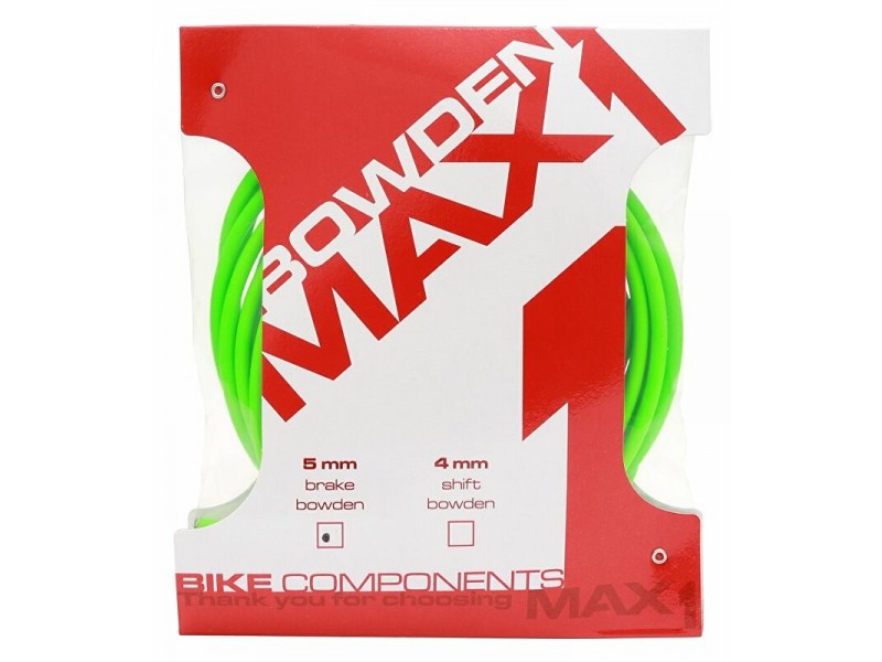 Brzdový bowden MAX1 v několika barevných provedeních, polyethylenová vložka pro perfektní chod.Balení obsahuje 3m barevného bowdenu.Barva: fluo zelenáPrůměr: 5mm