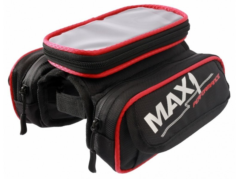Kompaktná dvojitá brašna MAX1 na rámovú trubku s odnímateľným vreckom prispôsobeným pre mobilný telefón. Pasuje na väčšinu štandardných rámov. Špecifikácie: odnímateľné vrecko pre mobilný telefón s dotykovou membránou, reflexné logo na boku, vodeodolný krytý zips na bočných vreckách, možnosť umiestnenia mobilného telefónu s veľkosťou do 5,5" hmotnosť: 210 g, rozmery brašny: (dĺžka) 2x19 cm, (šírka) 2x5 cm, (výška) 2x10 cm, objem brašny: 2x 950 cm3